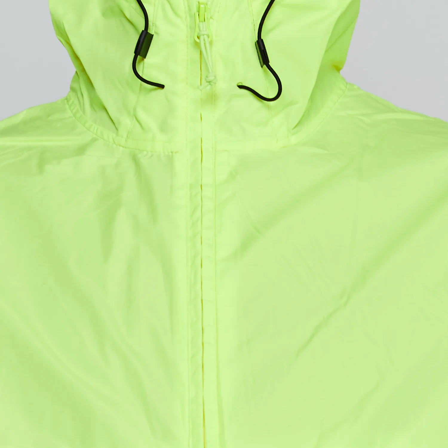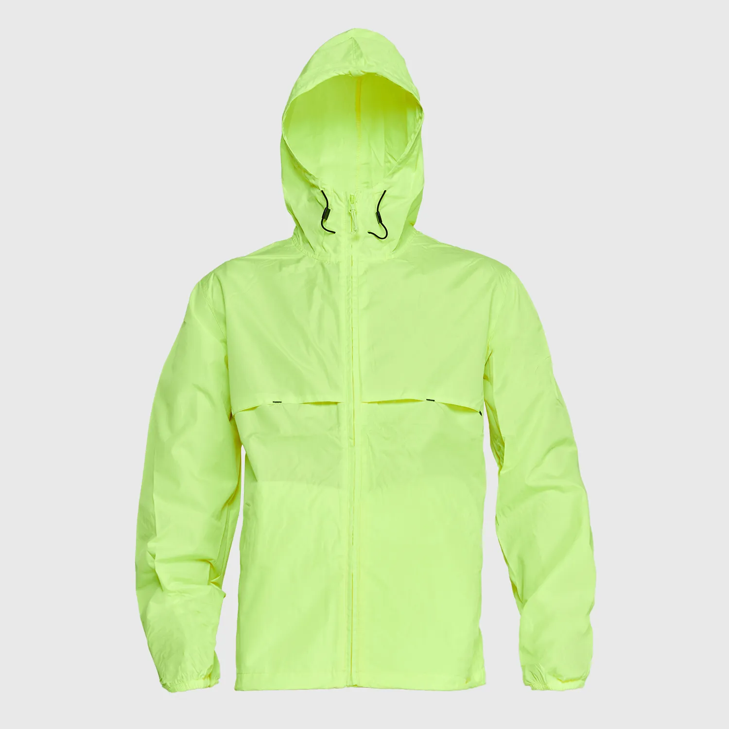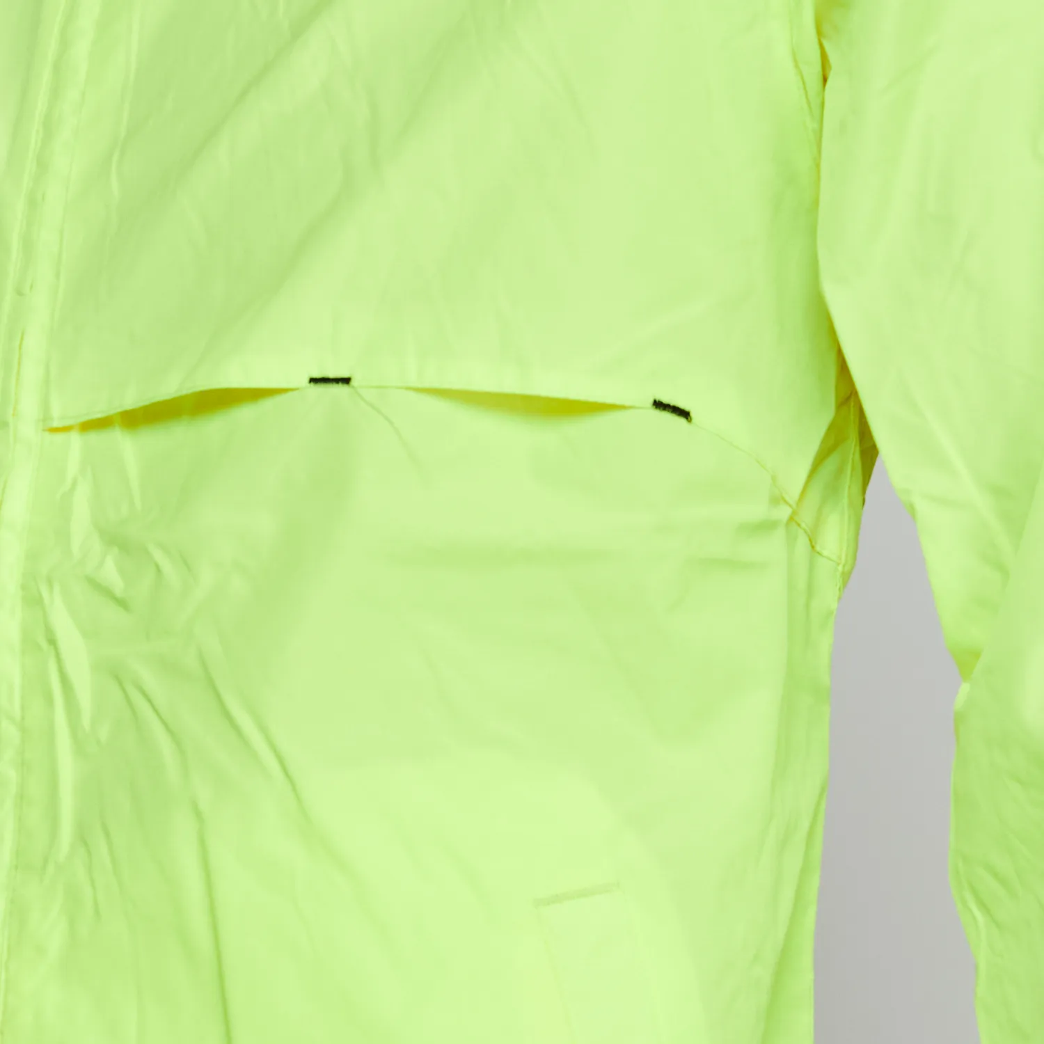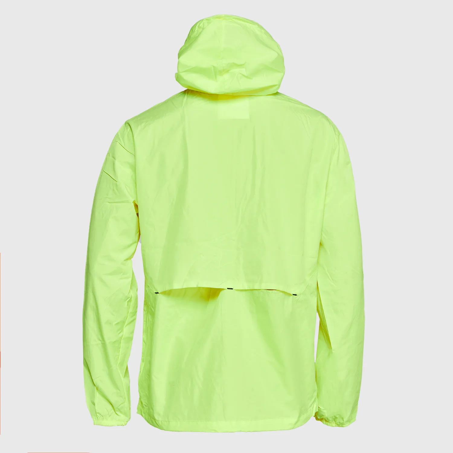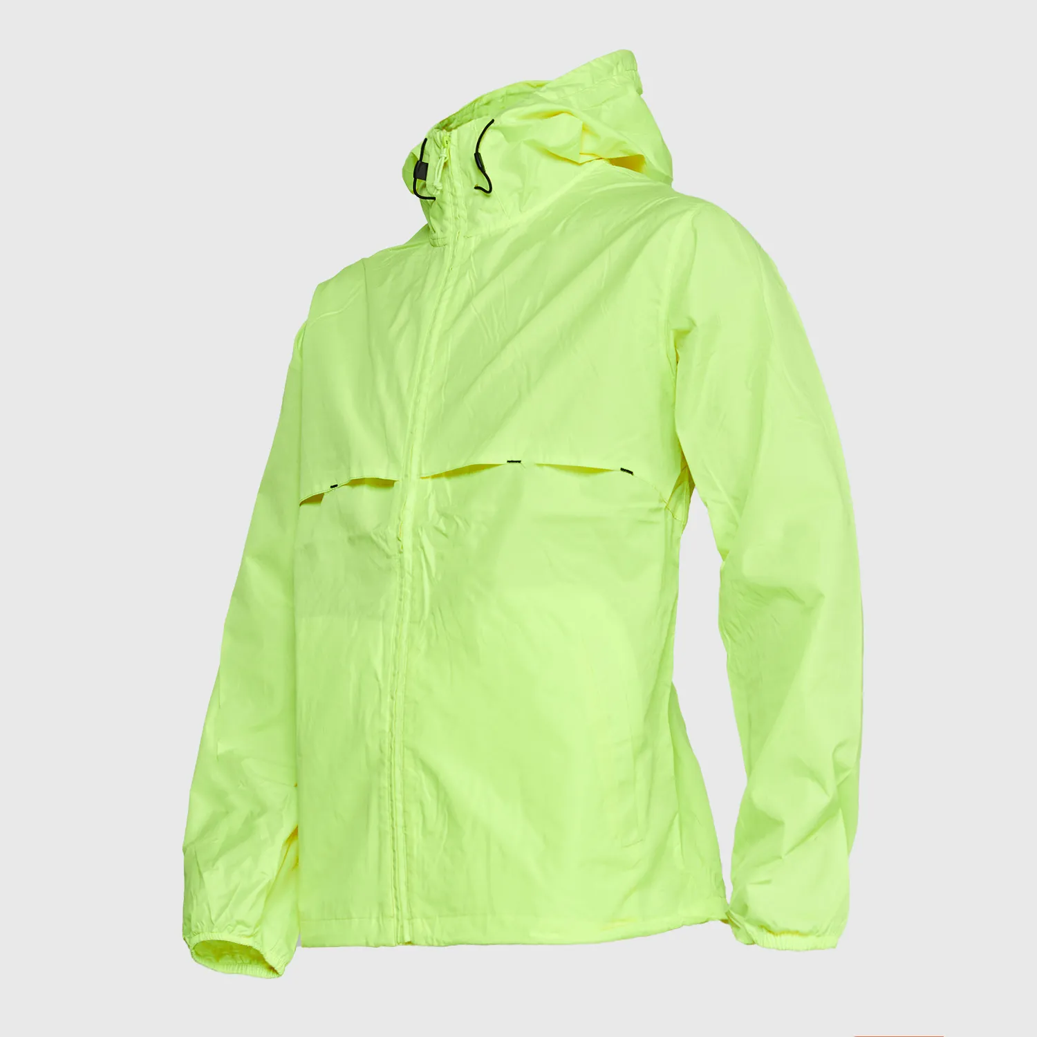Gorro fijo, ventilación bajo brazos, puños elasticados, cortes en pecho y espalda que facilitan la ventilación. Costuras interiores reforzadas, pretina ajustable con stoppers. Color fluor sin normativa.