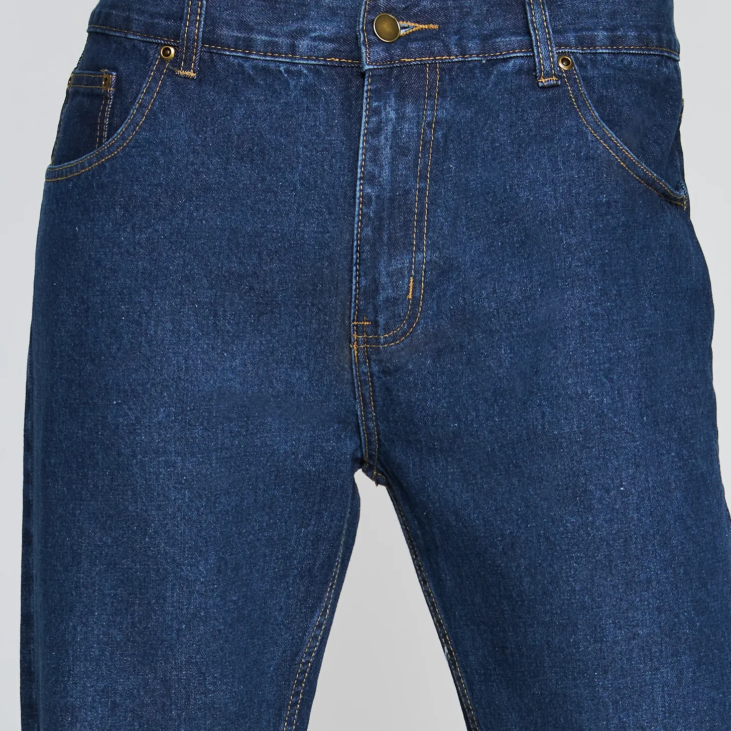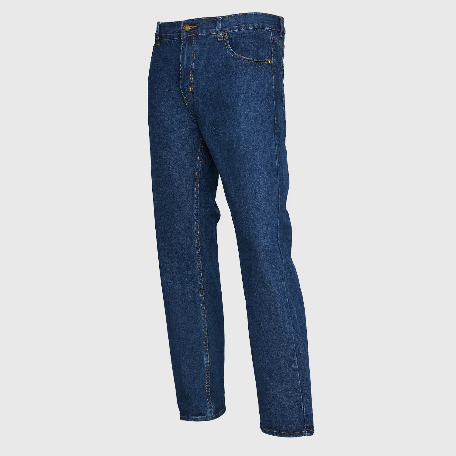 Jeans 100% algodón pre-lavado, tejido altamente resistente. Tiro medio. Botón y rivetes metálicos. Cierre de metal cromado. Costuras reforzadas.
