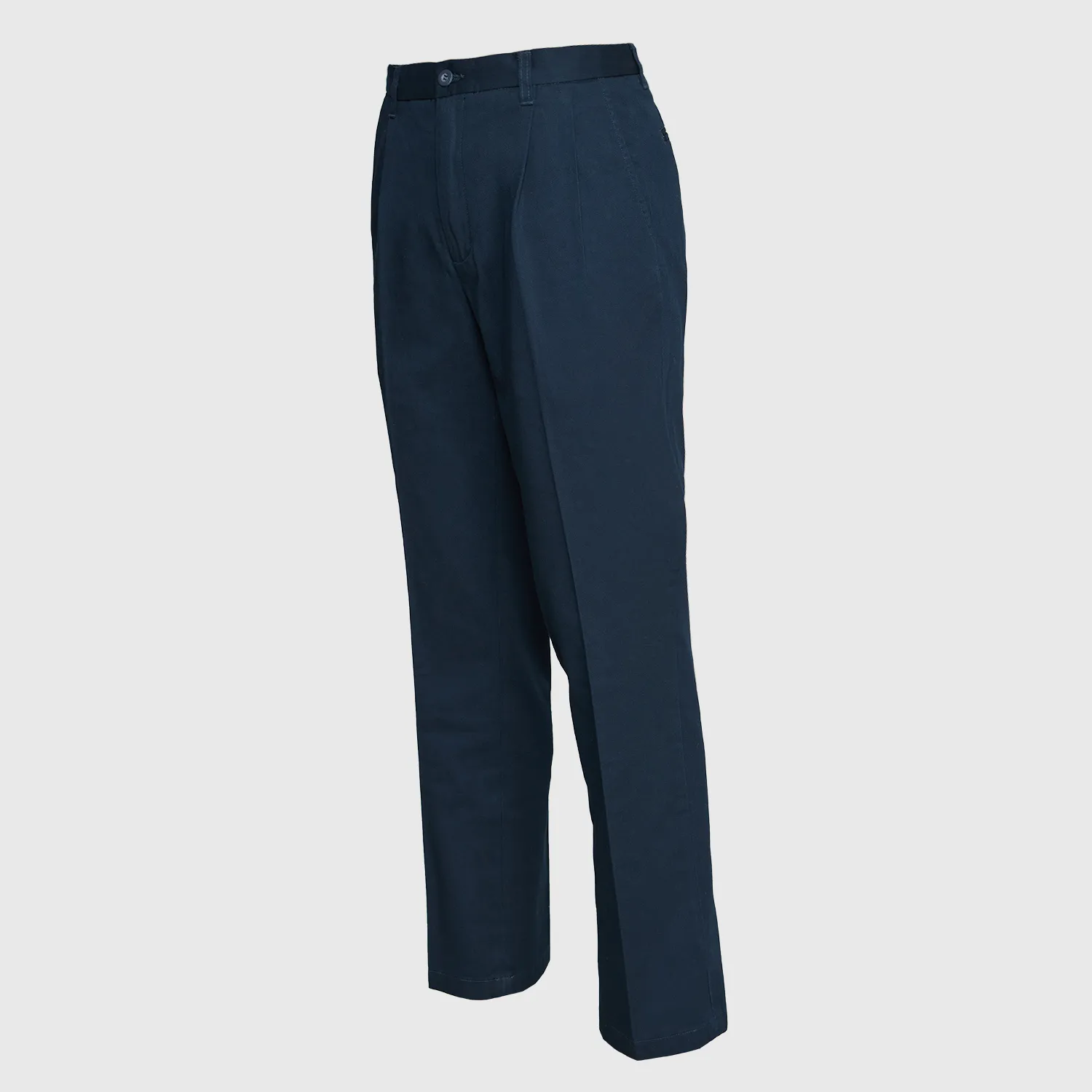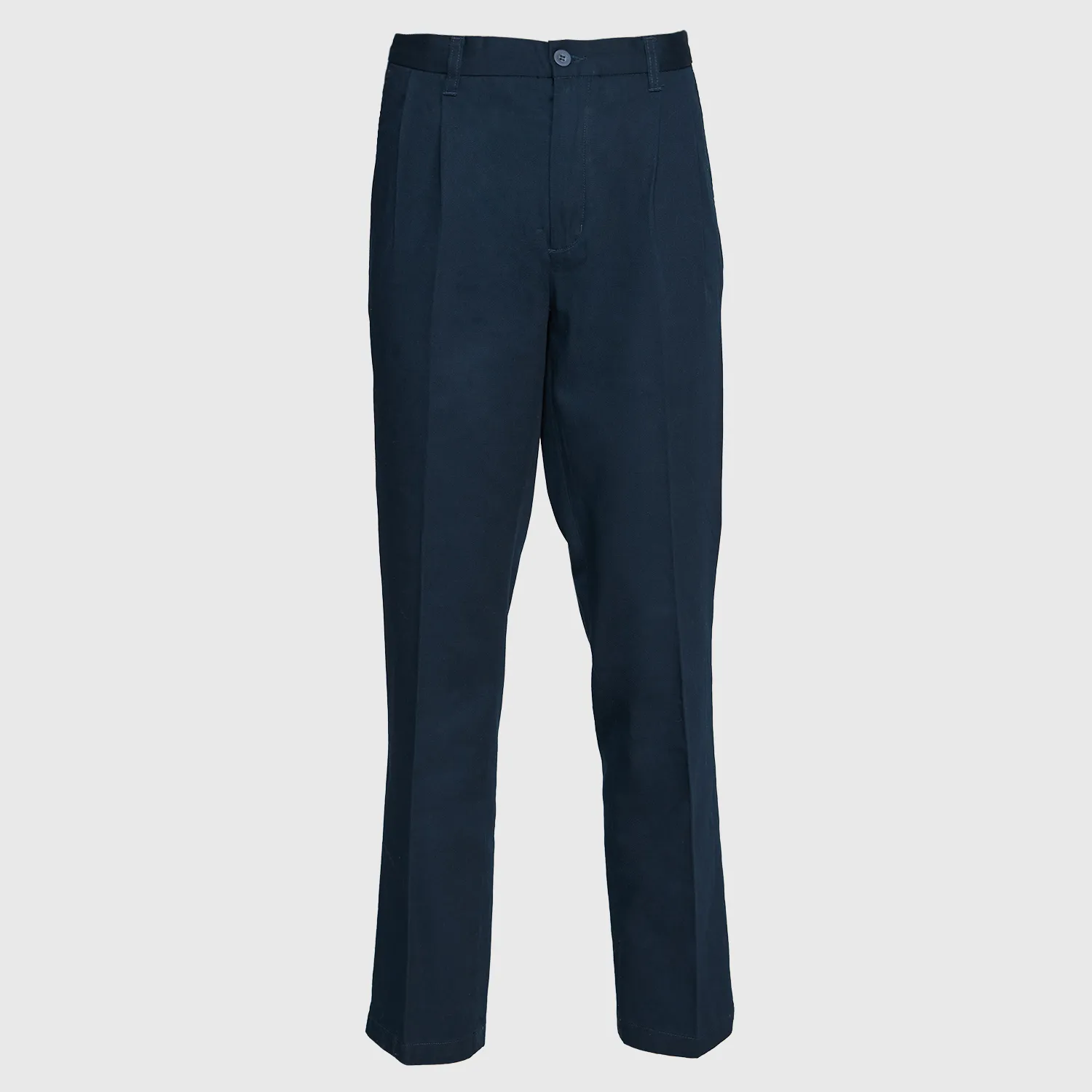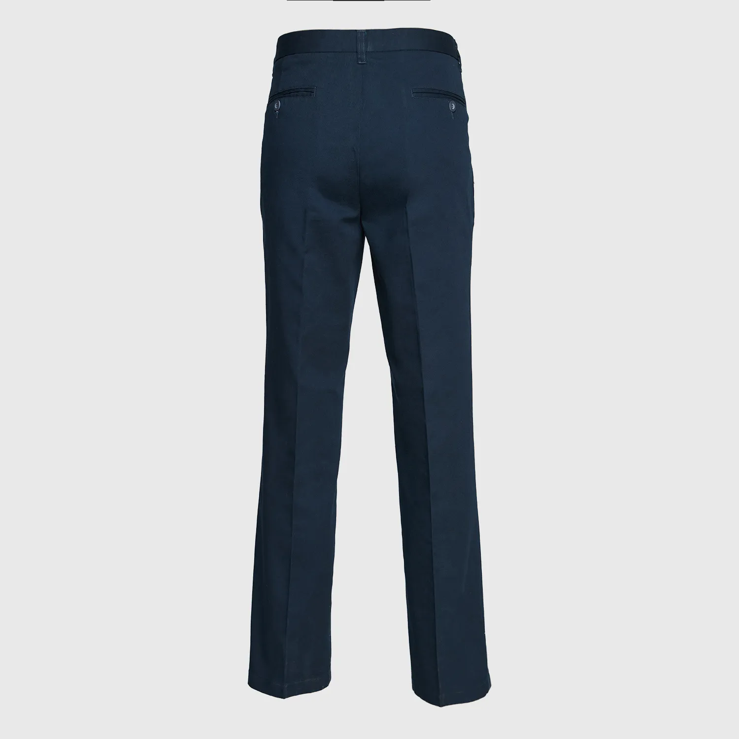 Pantalón formal, frente pinzado y calce recto. Finas terminaciones interiores. Con tratamiento de fijación de color. Costuras refo