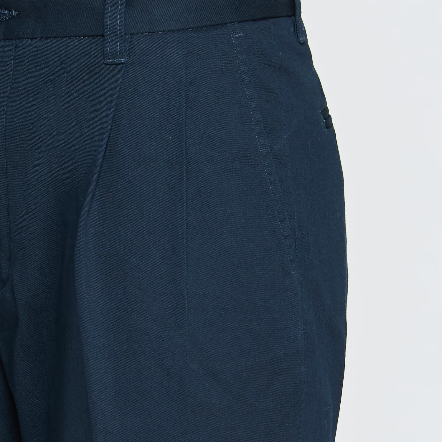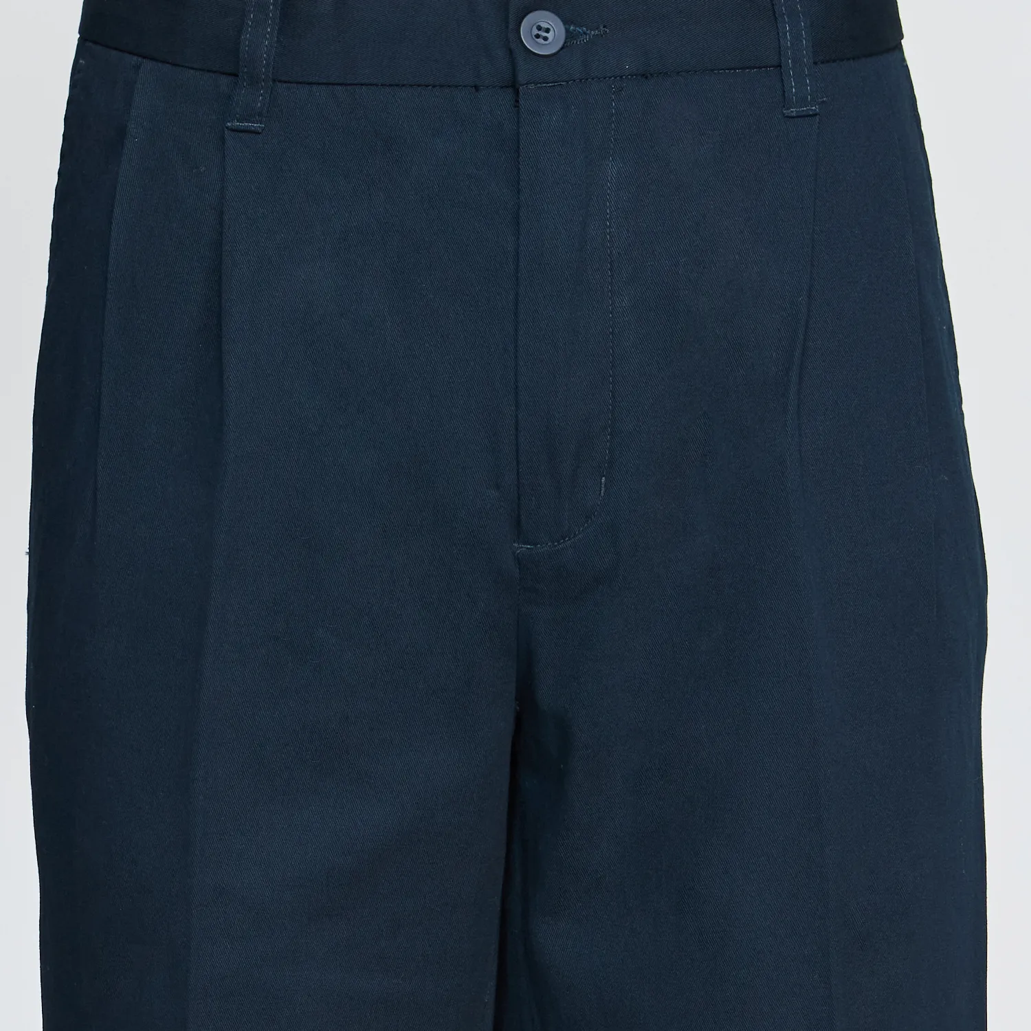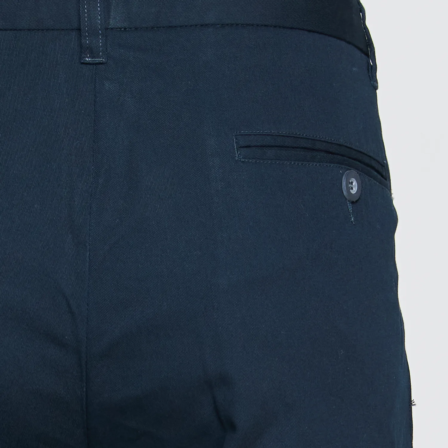 Pantalón formal, frente pinzado y calce recto. Finas terminaciones interiores. Con tratamiento de fijación de color. Costuras refo