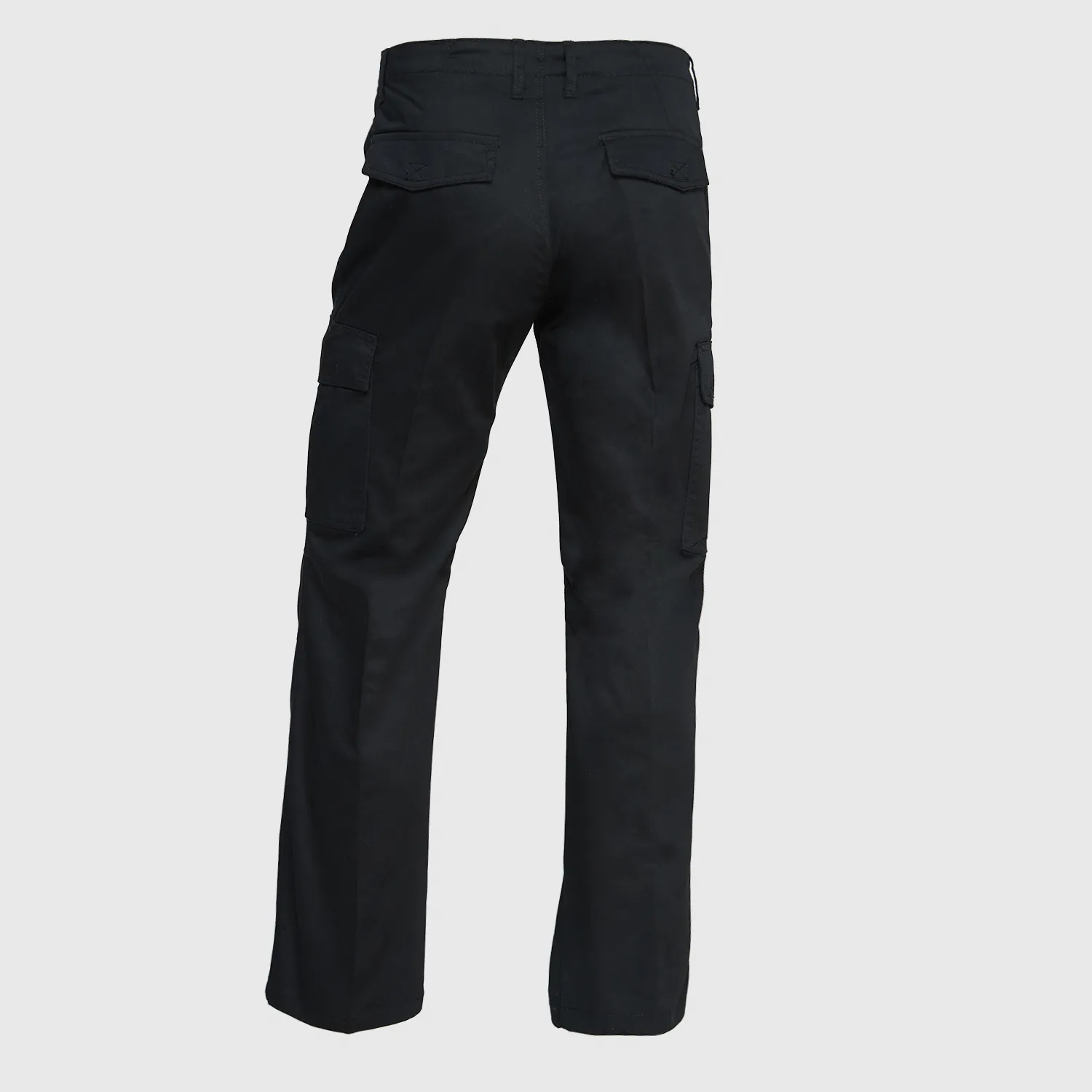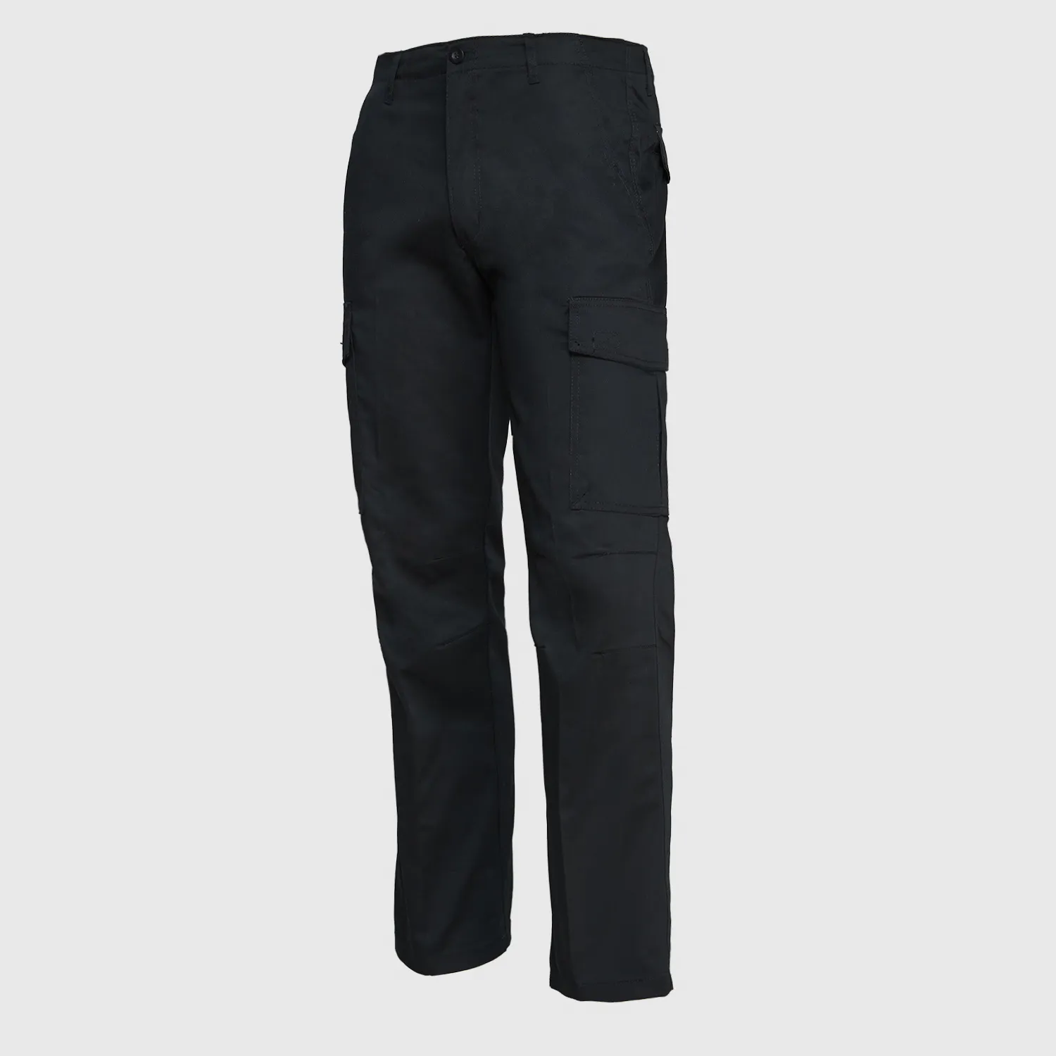 Pantalón cargo, frente plano, tiro medio y calce clásico. Cintura interior reforzada, seis bolsillos multifuncionales. Finas terminaciones interiores. Costuras reforzadas.