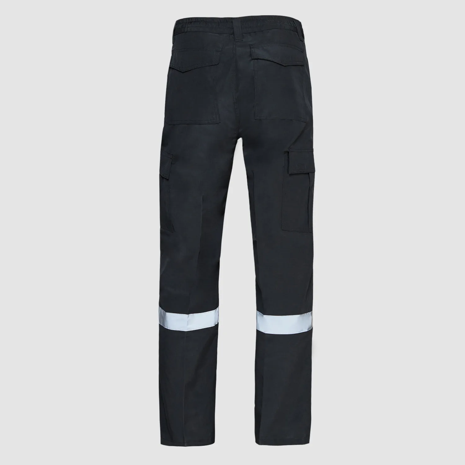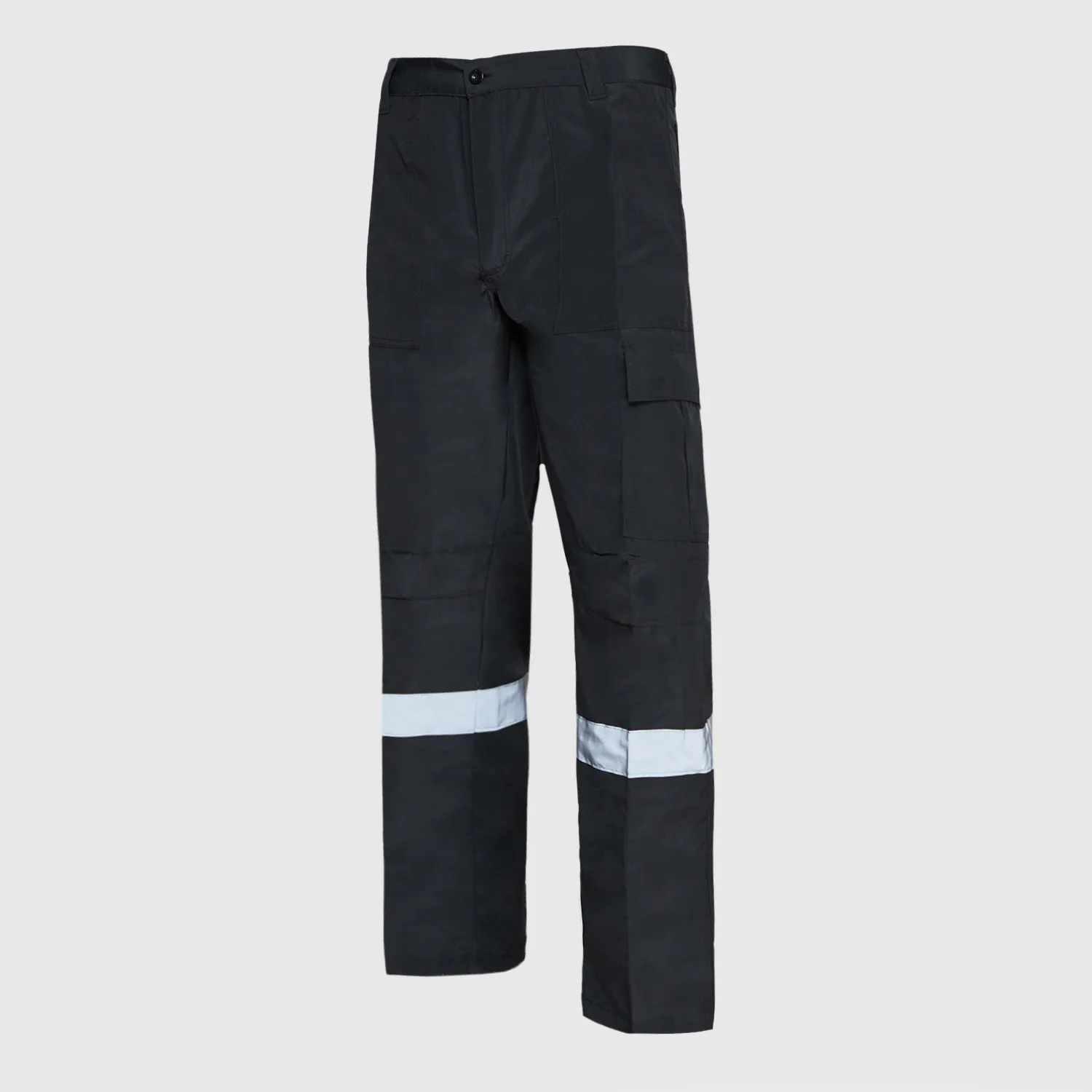 Pantalón con costuras reforzadas y desarrollado en tela de fácil lavado y planchado. 6 bolsillos multifuncionales y ajuste en cintura con elastico. Cinta reflectante de 2” en piernas.