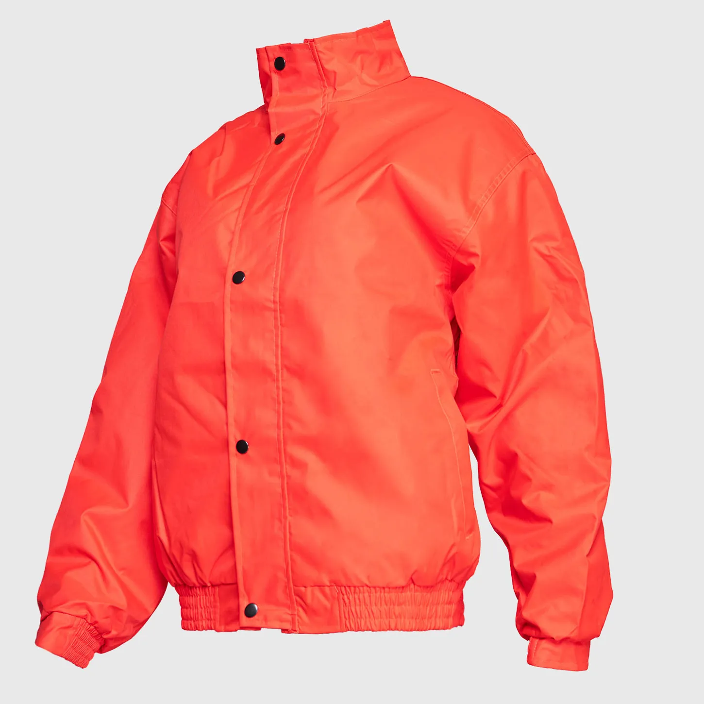 1.3.7. Chaquetón impermeable, con cierre eclair. Color rojo fluorescente, dispuesto dentro del área definida para las coordenadas cromáticas asignadas por el decreto.